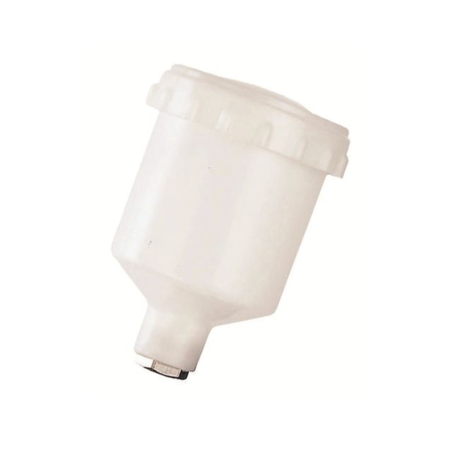 Бачок предназначен для краскораспылителей с верхней подачей , имеет крышку, оснащённую резьбой, которая обеспечивает герметичное закрытие.Бачок выполнен из пластика,прочен и надёжен ,а верхнее расположение позволяет использовать материал до последней капли,что положительно влияет на рабочий процесс.Тип крепления к краскораспылителю-резьбовое соединение ,фитинг с внутренней резьбой.
