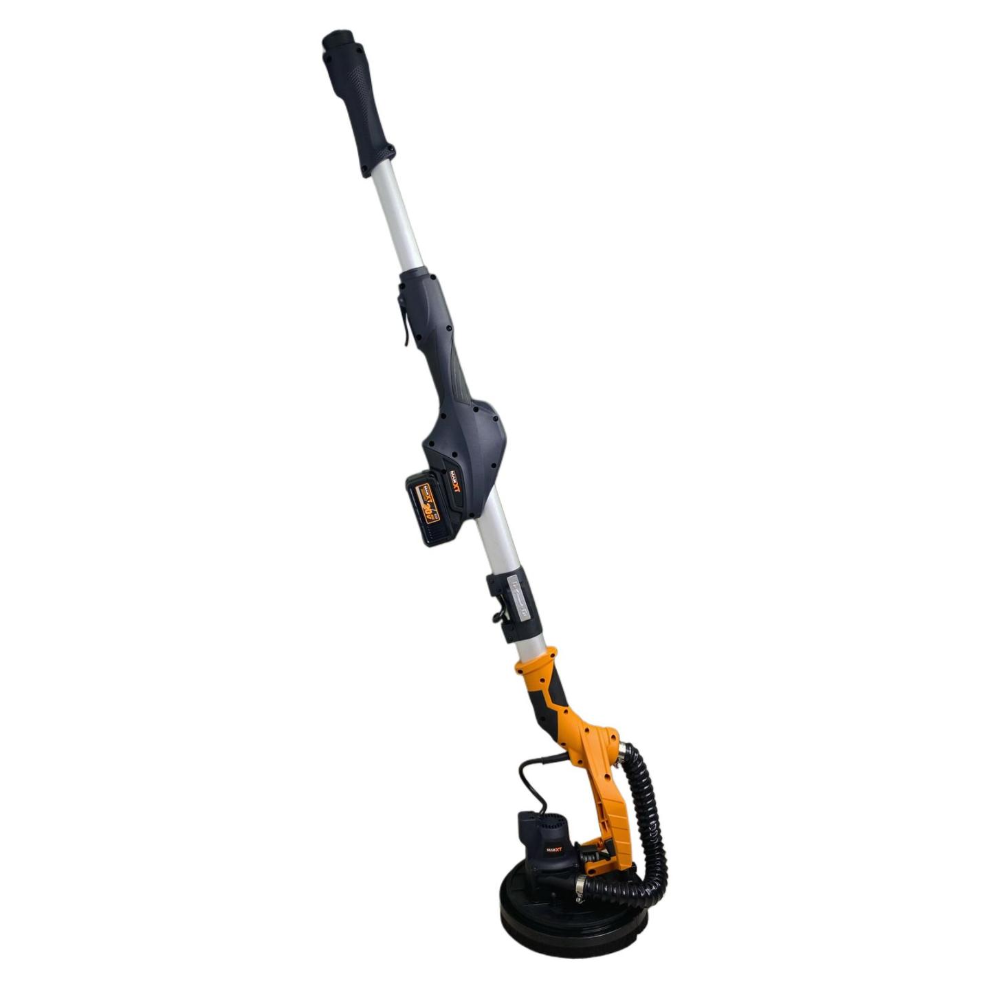 Шлифмашина работает с мешком для сбора пыли, оснащена телескопической (выдвижной) ручкой удлинителем.